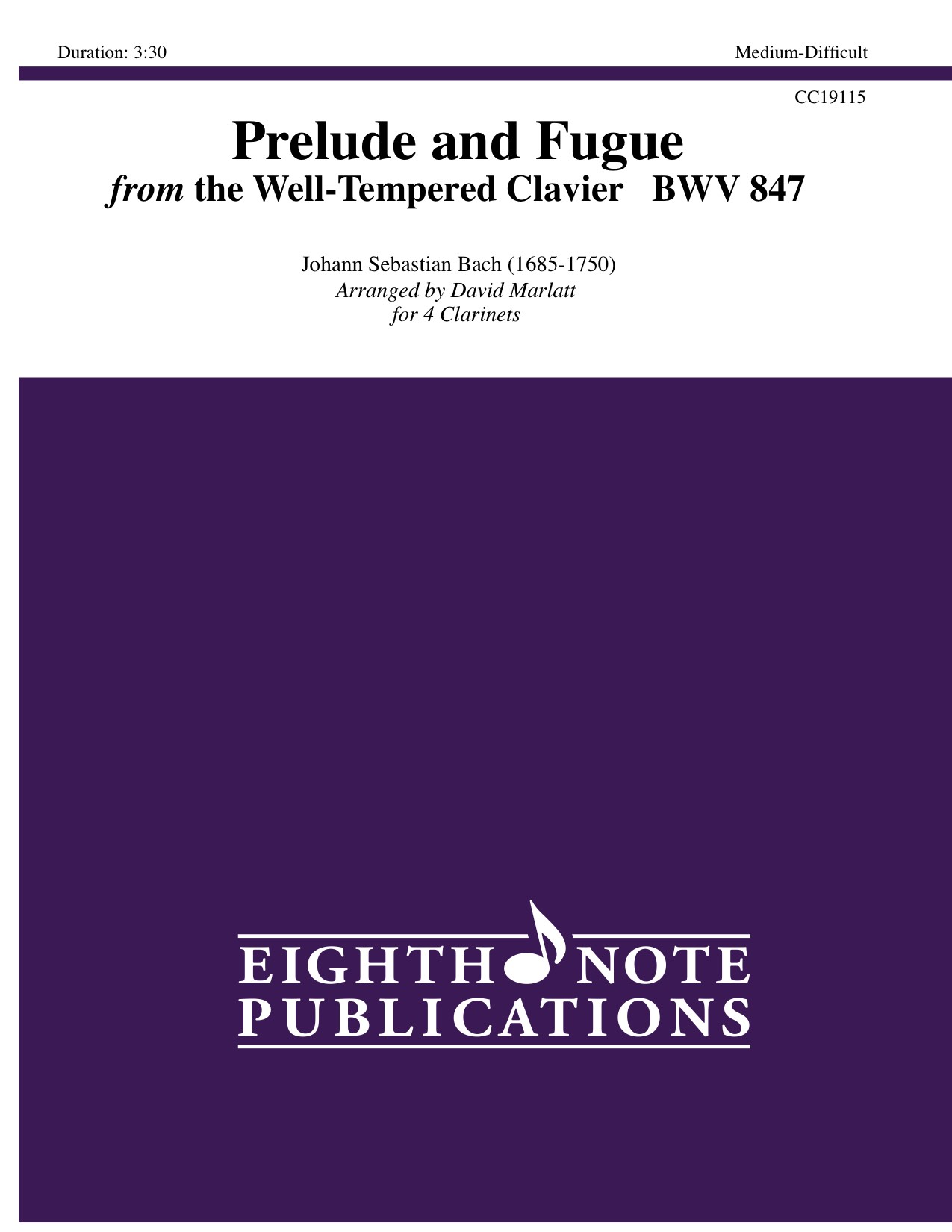 This famous Prelude and Fugue has been brilliantly transcribed for 4 clarinets. All parts are interesting and challenging which makes this a great choice for concert or contest use.