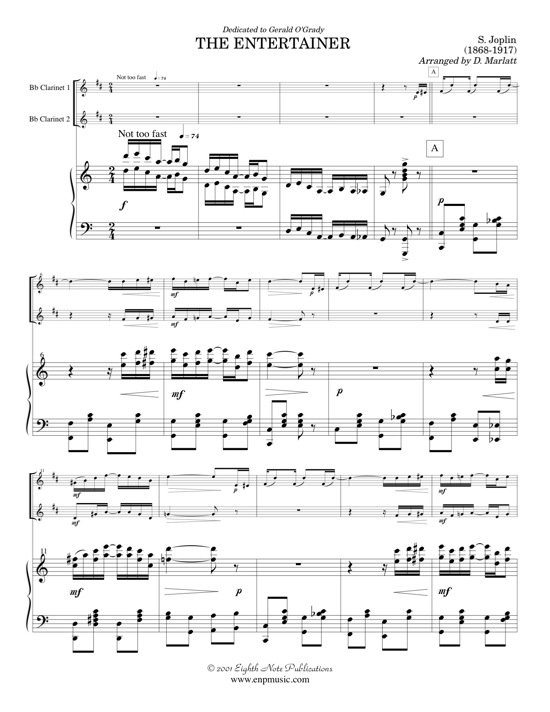 This piece needs no introduction. It has been arranged here for 2 clarinets and piano and this new sound adds even more excitement to the original. The piano part remains in the original key and clarinets play the famous melodic lines above the steady bass. The clarinets and piano alternate melodic sections. Sometimes the piano plays alone and sometimes the clarinets play the melody with the piano adding newly composed, stylistically accurate counter melodies. This is a unique addition to the repertoire for clarinets and piano. |