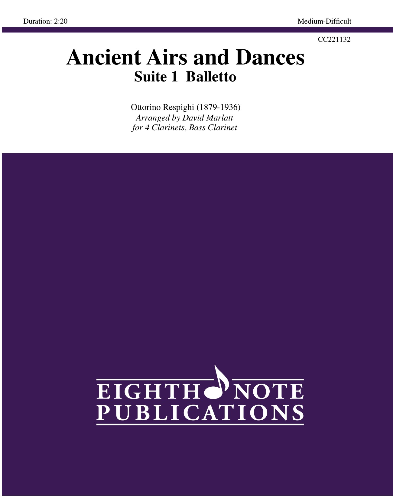 This famous orchestral piece is now available for an all clarinet ensemble. Respighi took 17th century lute pieces and arranged them to exploit the colors available to the modern orchestra. This is the first movement of the first suite. The melody flows throughout the ensemble with most parts getting sections to lead. A great piece of chamber music on a concert or recital. |