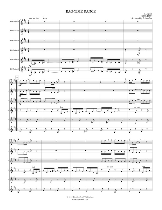 This is a Scott Joplin rag which has been arranged for 6 clarinets. The various parts alternate playing the famous melodic lines and playing the idiomatic rag accompaniment. There have been some newly composed, stylistically accurate counter melodies inserted to add interest and excitement. |