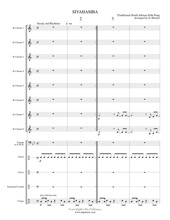 This is a truly unique arrangement for clarinets. This is a traditional South African folksong that has been adapted and arranged for clarinet ensemble and percussion. The original a capella version seemed a little thin for 8 clarinets so 5 percussion instruments were added to create the authentic rhythmic backgrounds. This would be an exciting way to open your next concert. |