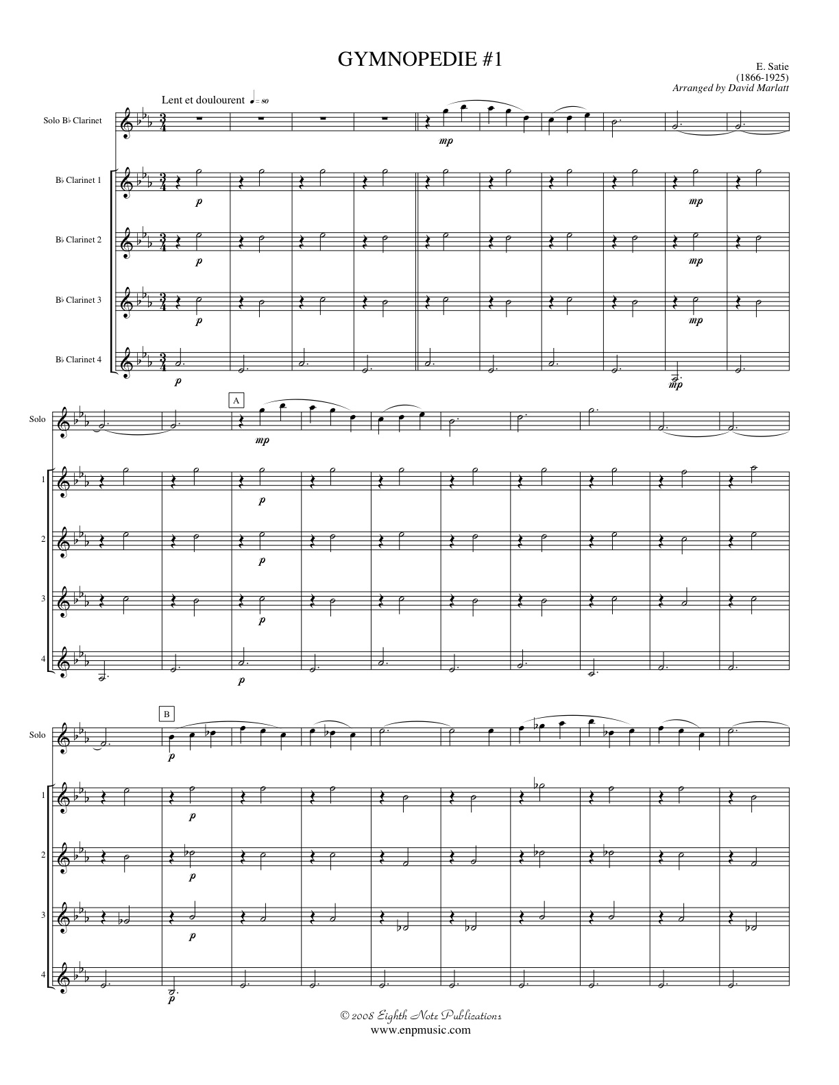 The first Gymnopedie, a word coined by Satie himself, is perhaps the composers most recognizable work. The melancholic nature of the melody lends itself well to the sombre mood of the clarinet.