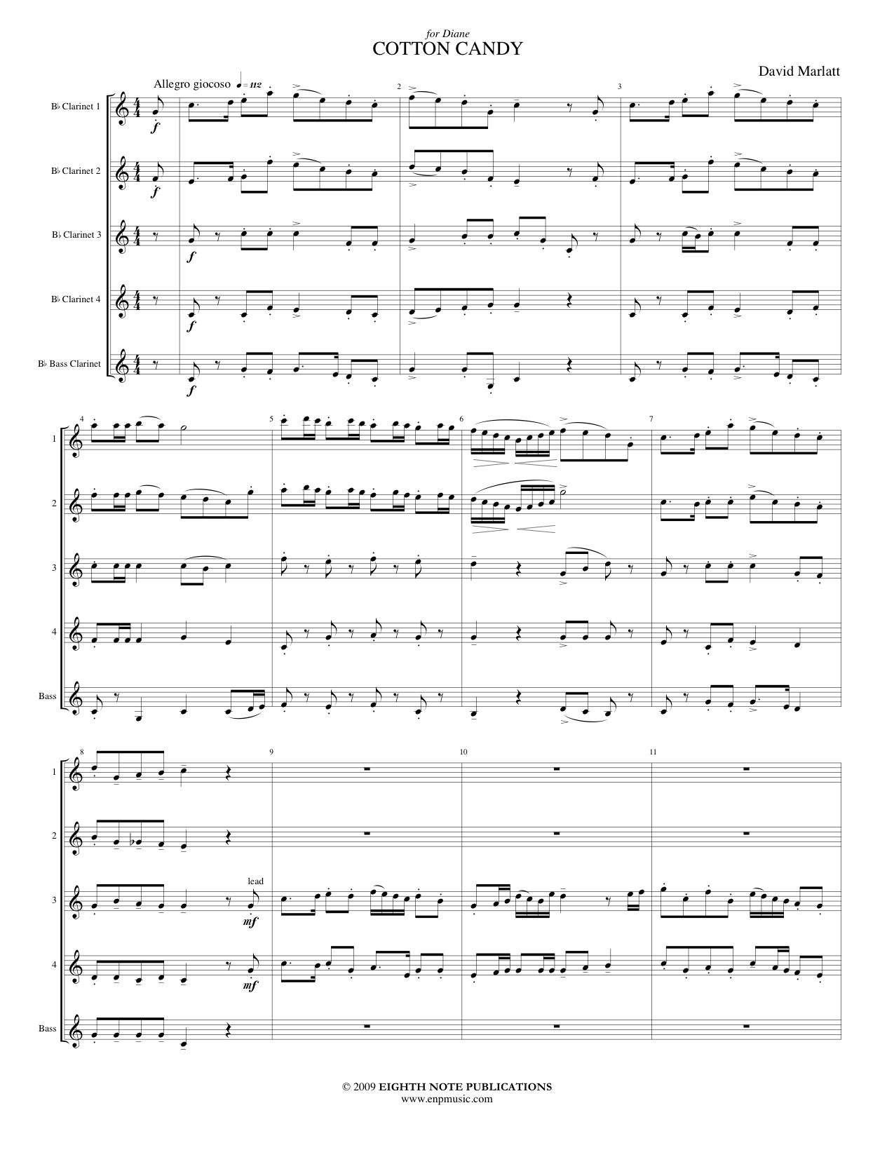 Cotton Candy is a quick, light and fun tune intended as a closer or encore on a concert. It is musically simple and the harmonies are typical of cartoon or circus music. The title suggests the gaiety that one would encounter at a town fair or circus, eating food that is nothing but sugar! |