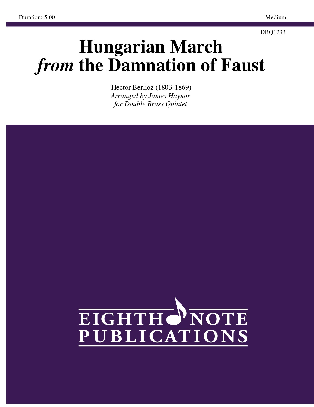 Hector Berlioz has written some of the most electrifying music of all time for brass players. Whose hair hasn t stood on end after the last chord of Roman Carnival. The Hungarian March from the Damnation of Faust has all the components of a rip-roaring good time for audience and performer alike, complete with that effective (loud) ending. Distilled to it s essence (without those superfluous string and woodwind parts) this piece is scored for double brass quintet with bass drum. |