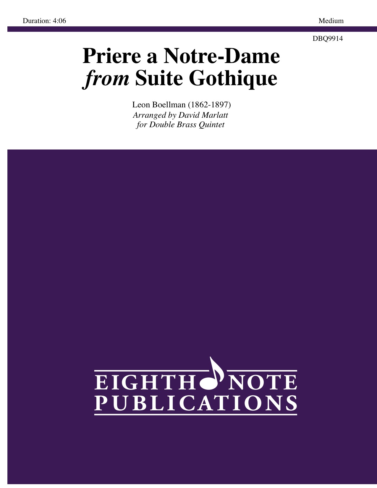 This beautiful slow movement from a work for solo organ is a great feature for the horns in a double brass quintet. The melody flows throughout the ensemble and is an ideal work to show off the lyrical and musical side of the brass ensemble. The haunting melody will captivate audiences with its simplicity and elegance. |