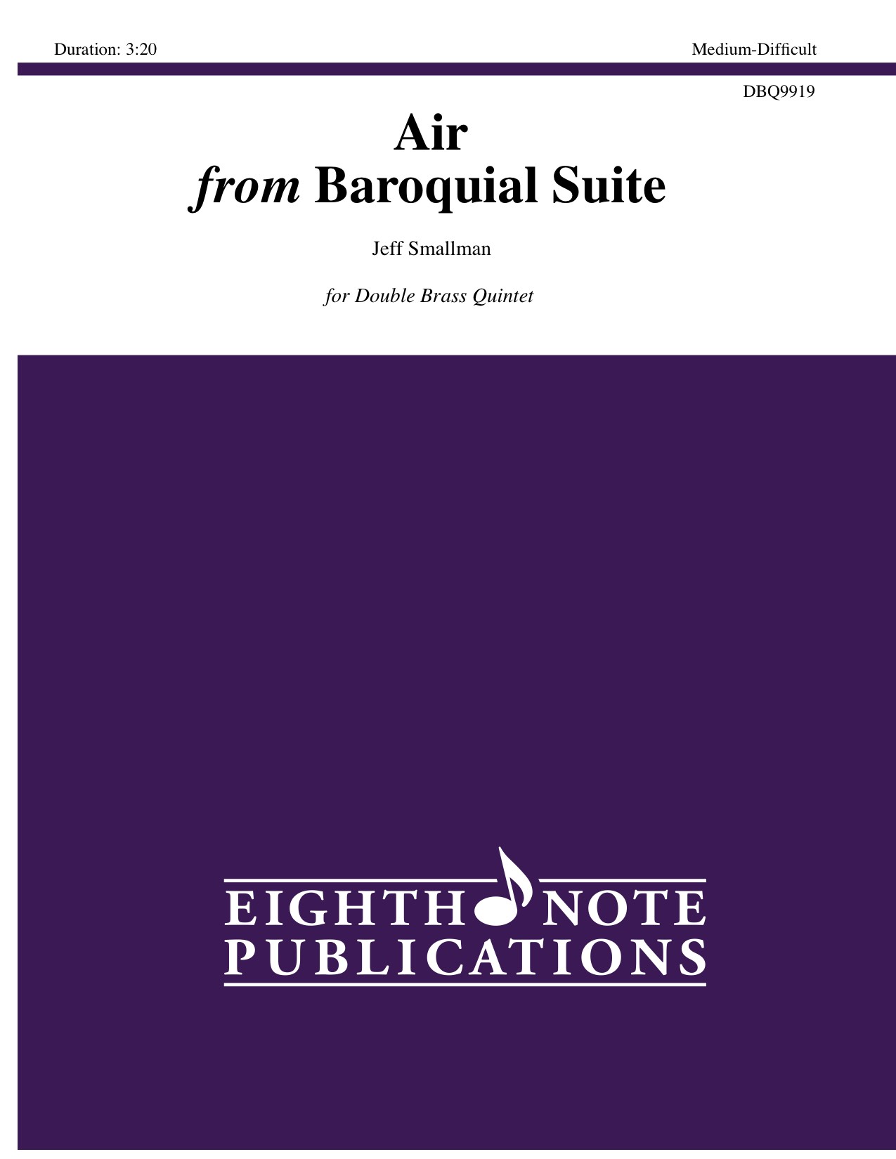 The Air is a lovely slow movement that came from Baroquial Suite, a suite in the Baroque style for brass quintet. Reminiscent of the famous Air from J.S. Bachs Orchestral Suite No. 3 in D, Mr. Smallmans Air explores more chromatic harmonies while still maintaining a Baroque feel. |