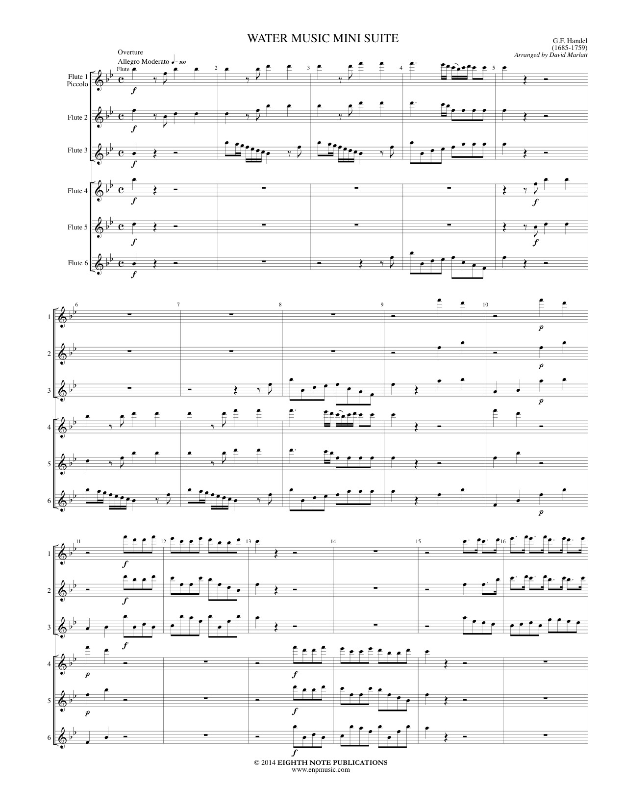 One of Handel's most often performed works is now available in this flute ensemble setting. Five movements have been taken from Water Music and they have been set in two choirs of three flutes each.