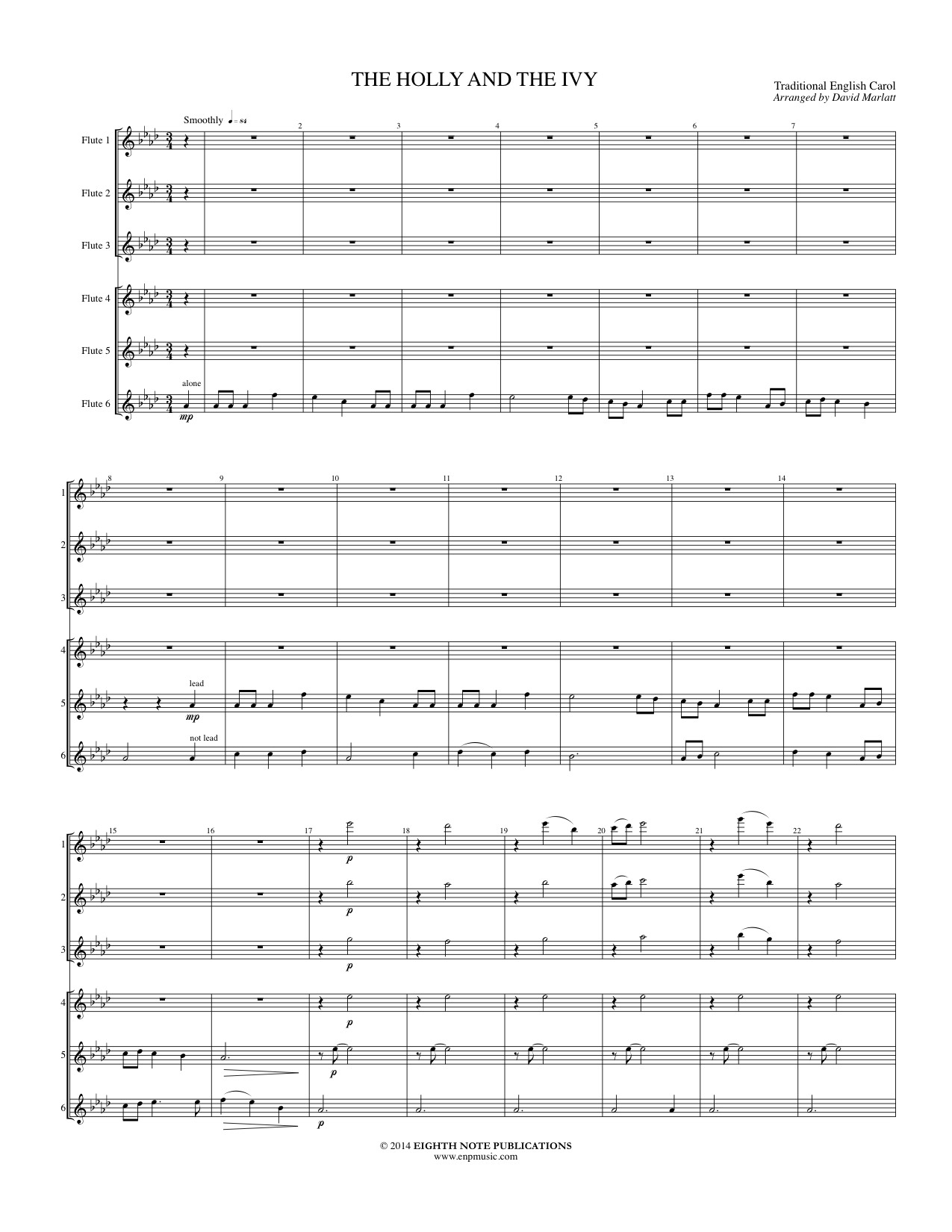 The Holly and the Ivy is a traditional English Christmas carol. Holly and ivy have been important as English Christmas decorations for church use since at least the fifteenth century. This piece is flowing and smooth, quiet and reflective.