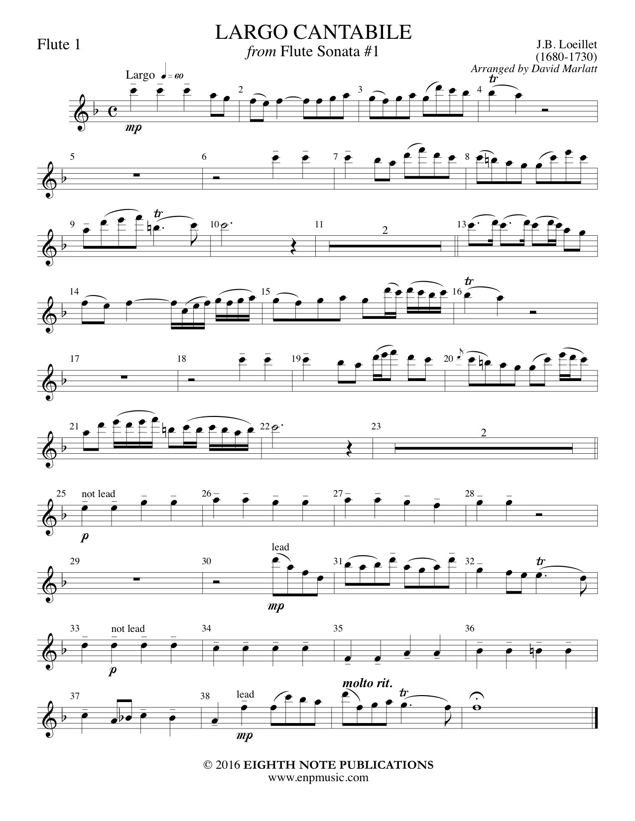 This is truly beautiful music ideal for weddings, church services or simply as a lyrical warm up. Largo Cantabile is the opening slow movement from a flute sonata. The melody is passed throughout the ensemble and the first section is repeated with ornamented parts written for the melody. |
