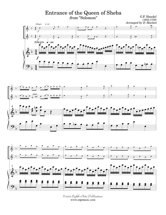This famous and exciting piece would make a great opening to a concert or it could even be used as a recessional at a wedding service. The technical parts flow very nicely and sound more difficult then they are! Scored here for 2 flutes and keyboard (piano or organ), this edition is sure to come in handy for various events. |