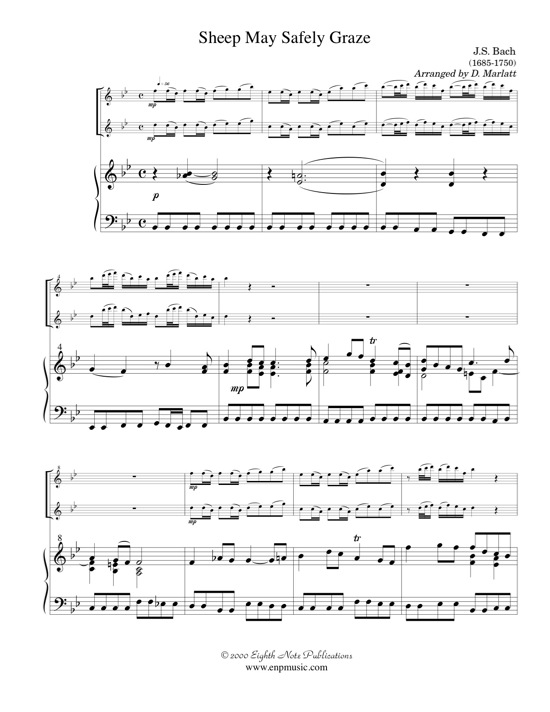 Bach wrote over 300 cantatas. This is the most famous section from Cantata No. 208. This setting for 2 flutes and keyboard (piano or organ) will be equally well received in both churches and recital halls.