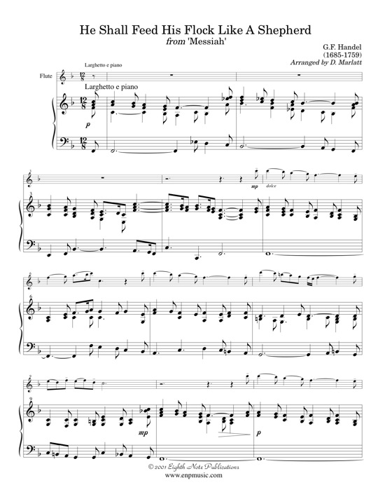 This famous aria from one of the best known Christmas pieces has been elegantly transcribed for flute and keyboard (piano or organ). This is a beautiful work with simple long phrases and clear harmonies. This arrangement is ideal for playing at Christmas church services or at weddings. |