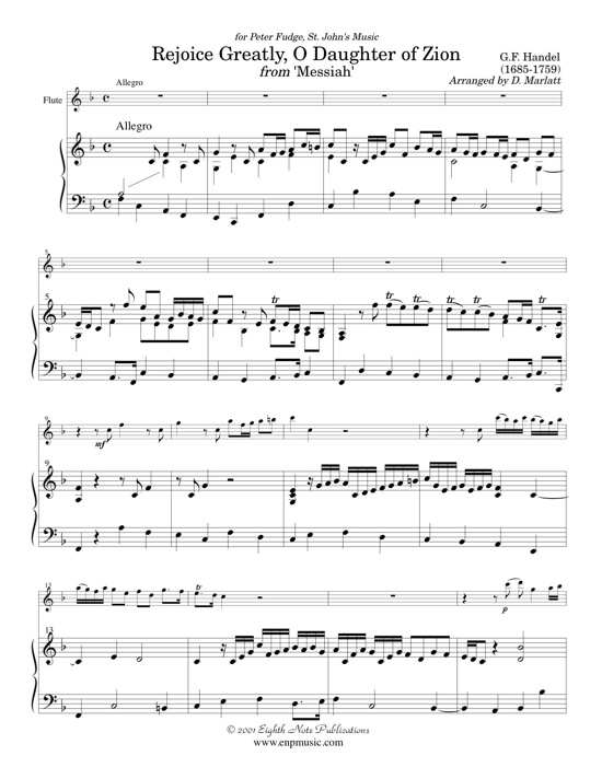 This famous aria from one of the best known Christmas pieces has been elegantly transcribed for flute and keyboard (piano or organ). The key has been altered to facilitate some of the technical requirements but the excitement of this showpiece remains. This arrangement is ideal for playing at Christmas church services. |