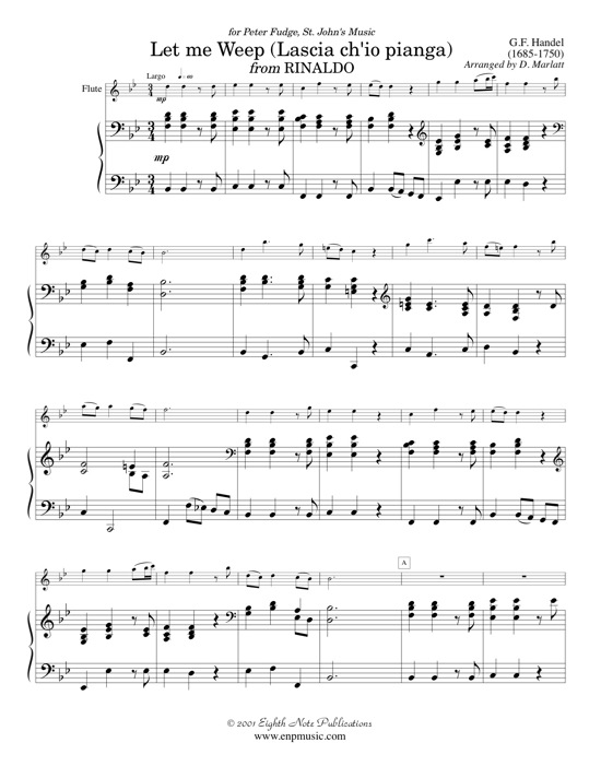 This beautiful slow piece is ideal for that change of pace piece on a concert. Its lyric nature also makes it a perfect selection for weddings or church services as pleasant, quiet background music. This work was originally a soprano aria and the lyrical line is great to demonstrate the singing quality of the flute.