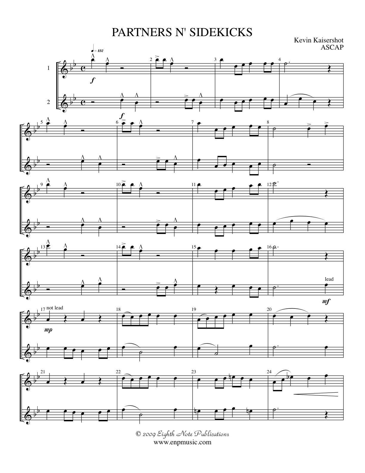 Designed for beginning level instrumentalists, Partners n Sidekicks was written for a couple of my former students whose musical energies were contagious. Though both very independent players (a skill that served them well as they progressed) they worked very well together, each challenging the other to be better. So it is with this piece that allows each performer to present the musical line as well as work together (in harmony) as the piece progresses.