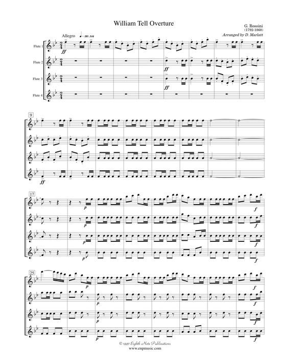 One of the most popular songs of all time is now available to the flute quartet. With the majority of the melody in the first flute part and interesting parts for all, this is a sure success for all players. Technical demands have been reduced without losing any of the excitement of the original work. |