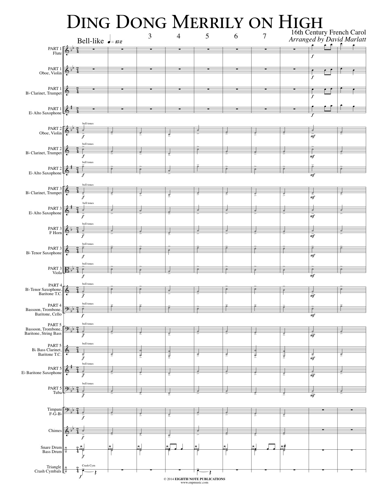 For many reasons, Christmas means joy. Ding Dong Merrily on High is a wonderful musical snapshot of the whole season. In this arrangement, we hear church bells chiming, voices uniting and see people smiling. It features great tutti, instrument family and small ensemble moments to show off all aspects of the band. |