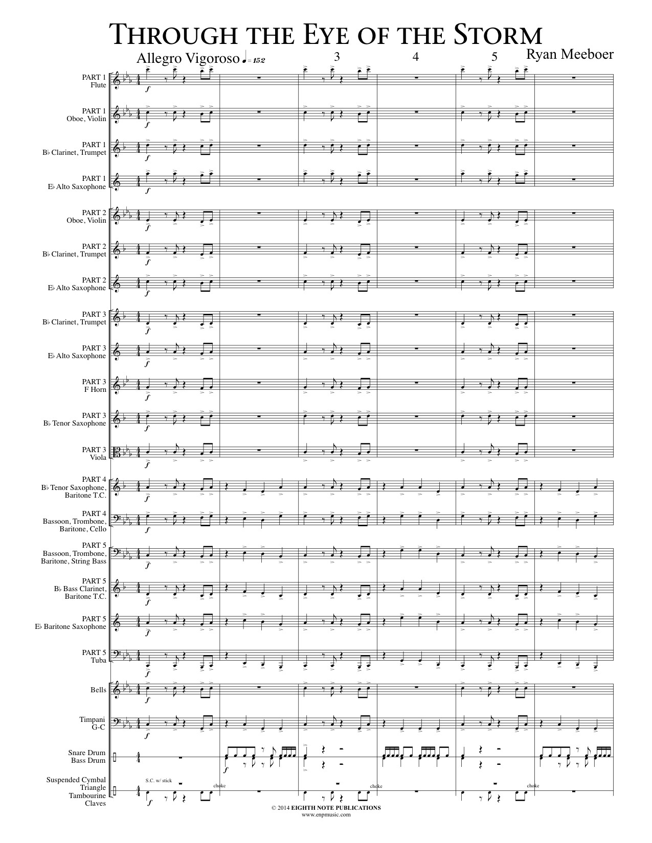 Through the Eye of the Storm is a piece full of suspense and intensity, describing the fury of a storm. It begins with strong dynamics, articulation and introduces the rhythmic drive that is carried throughout the entire piece.