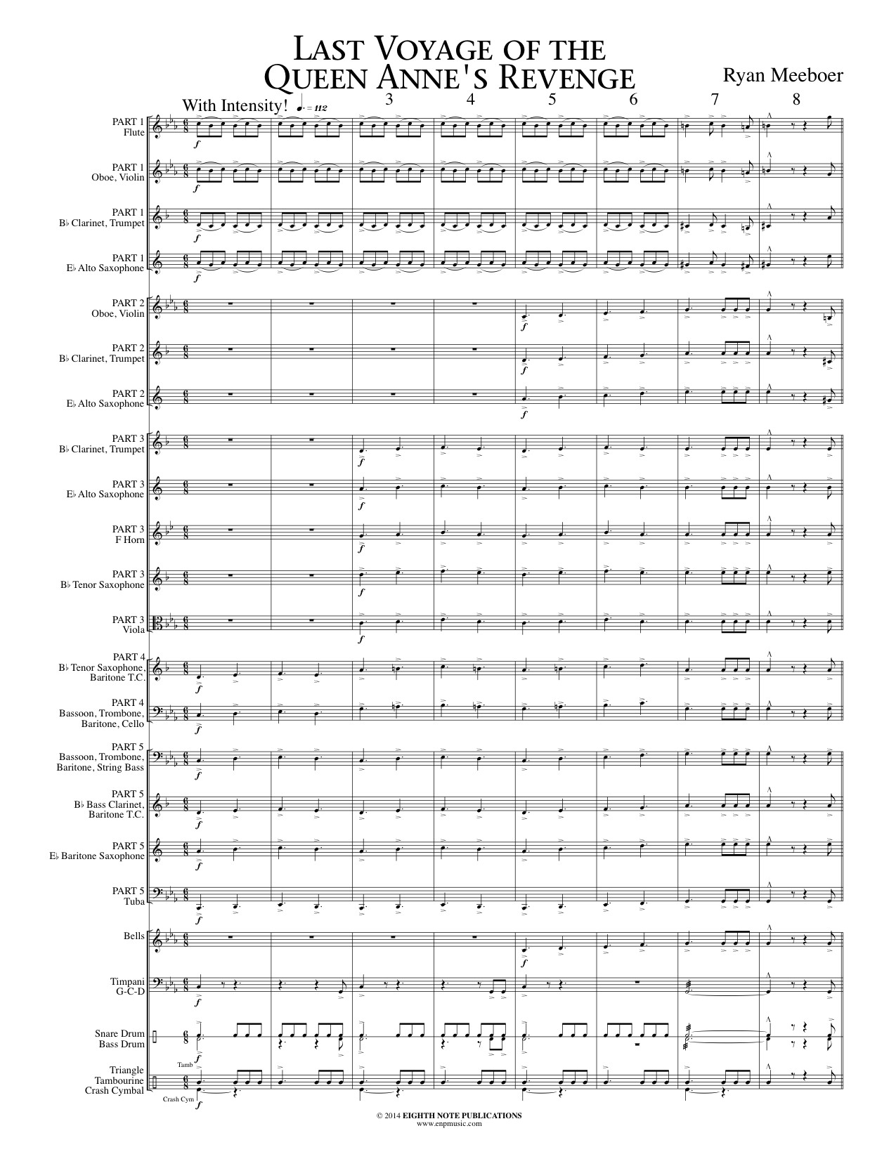 Queen Anne s Revenge was the final ship sailed by Edward Thatch, also known as the pirate, Blackbeard. To give the "pirate-like" feeling to the music, it has been composed in 6/8 time, as have many pieces about pirates. Great melodies and driving rhythms - argh! |