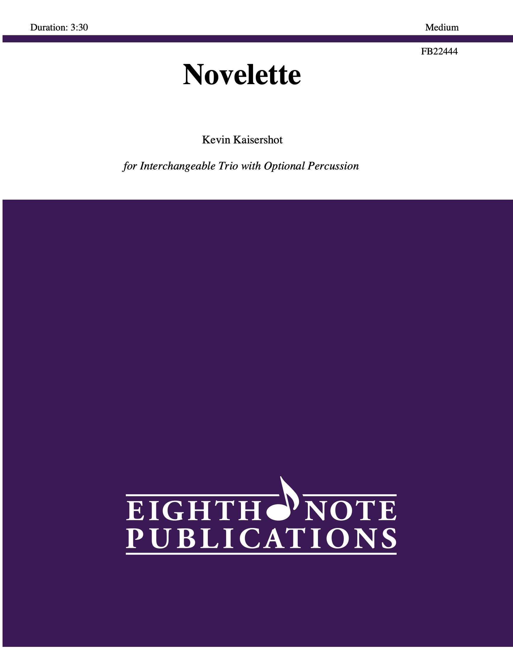 Novelette, as the title would suggest, is a small story with several distinctive chapters. As a result, this composition is a set of five variations on an original theme and each with their own character. With a wide variety of alternate parts provided, this is an ideal mix and match piece for any 3 instruments including optional percussion. Parts for each line include: Flute, Oboe/Violin, Trumpet/Clarinet, Alto Saxophone, Viola, Tenor Saxophone, Horn, Trombone/Euphonium/Bassoon, Baritone Saxophone, Tubas, Cello and Bass. |