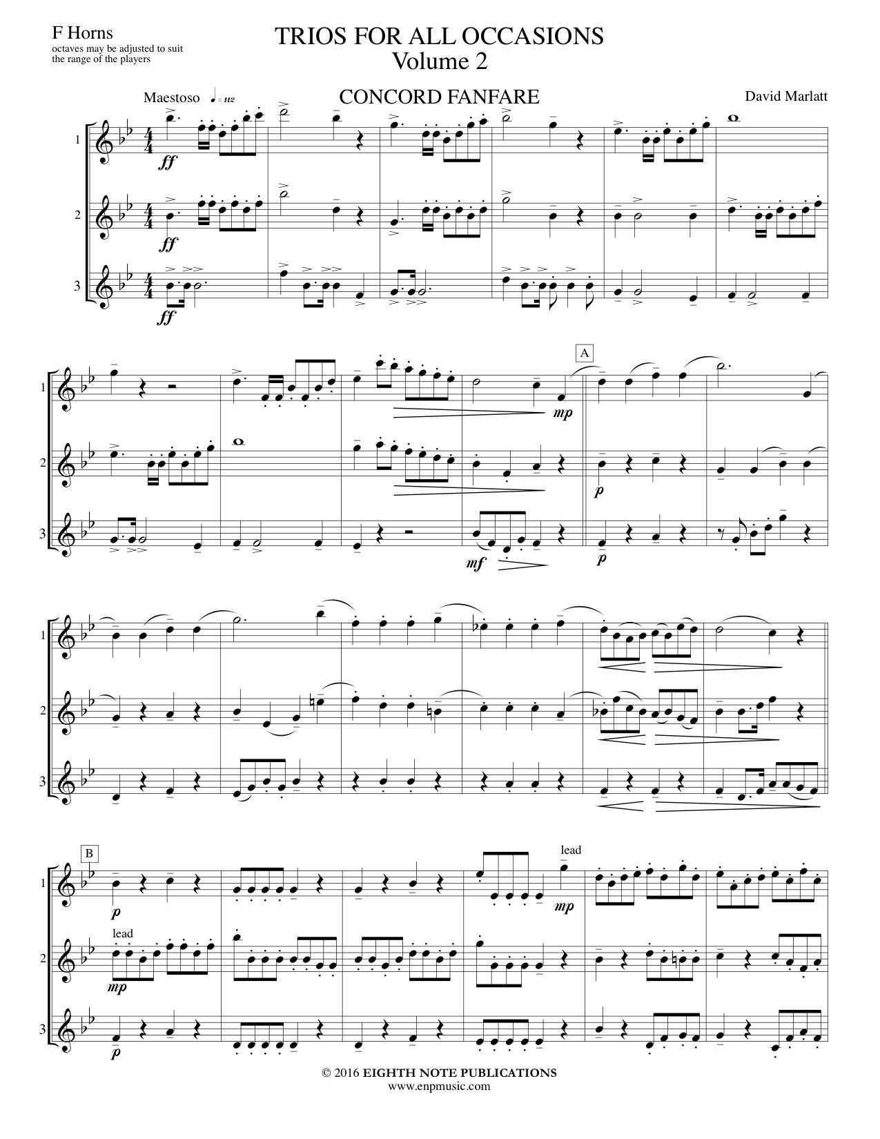 This is a collection of compositions and arrangements of well-loved music set for 3 like-instruments (or can be used with others in the series to accommodate performance with any combination of instruments). The arrangements are suitable for a variety of performance situations such as school concerts, at church or on gigs in the community. Pieces included are: Concord Fanfare, Vive le Canadienne, Overture from Water Music, Off on the Hunt, Home on the Range, Deck the Halls, O Come O Come Emmanuel, J entends le Moulin, Rag-time Dance, De Colores, The Celebration of Spring and 2+2+3.