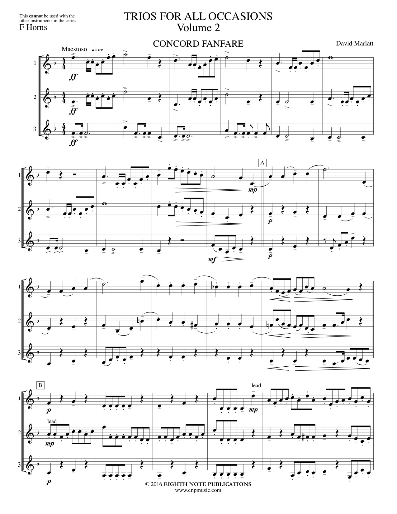 This is a collection of compositions and arrangements of well-loved music set for 3 like-instruments (or can be used with others in the series to accommodate performance with any combination of instruments). The arrangements are suitable for a variety of performance situations such as school concerts, at church or on gigs in the community. Pieces included are: Concord Fanfare, Vive le Canadienne, Overture from Water Music, Off on the Hunt, Home on the Range, Deck the Halls, O Come O Come Emmanuel, J entends le Moulin, Rag-time Dance, De Colores, The Celebration of Spring and 2+2+3.