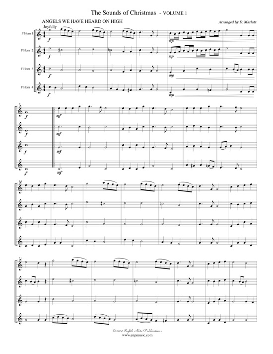This is another interchangeable series from Eighth Note Publications. Any 4 instruments (flutes, clarinets, saxophones, trumpets, horns, trombones and tubas) can be combined to form a mixed quartet. Great Christmas music set to interesting and creative arrangements make holiday fun for young musicians. The 10 pieces featured in this volume are: Angels We Have Heard on High, Carol of the Bells, O Little Town of Bethlehem, We Three Kings, O Holy Night, Joy to the World, Silent Night, Pat-a-Pan, It Came Upon a Midnight Clear and We Wish You a Merry Christmas.