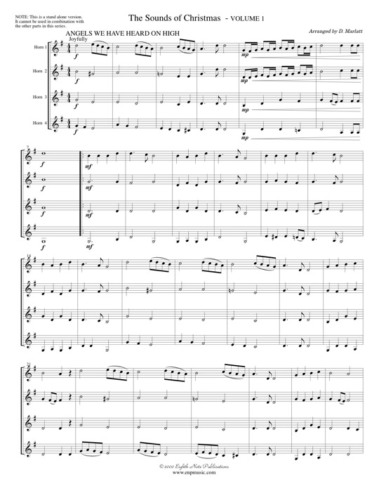 This is another interchangeable series from Eighth Note Publications. Any 4 instruments (flutes, clarinets, saxophones, trumpets, horns, trombones and tubas) can be combined to form a mixed quartet. Great Christmas music set to interesting and creative arrangements make holiday fun for young musicians. The 10 pieces featured in this volume are: Angels We Have Heard on High, Carol of the Bells, O Little Town of Bethlehem, We Three Kings, O Holy Night, Joy to the World, Silent Night, Pat-a-Pan, It Came Upon a Midnight Clear and We Wish You a Merry Christmas. This "stand alone" version is not part of the interchangeable set.