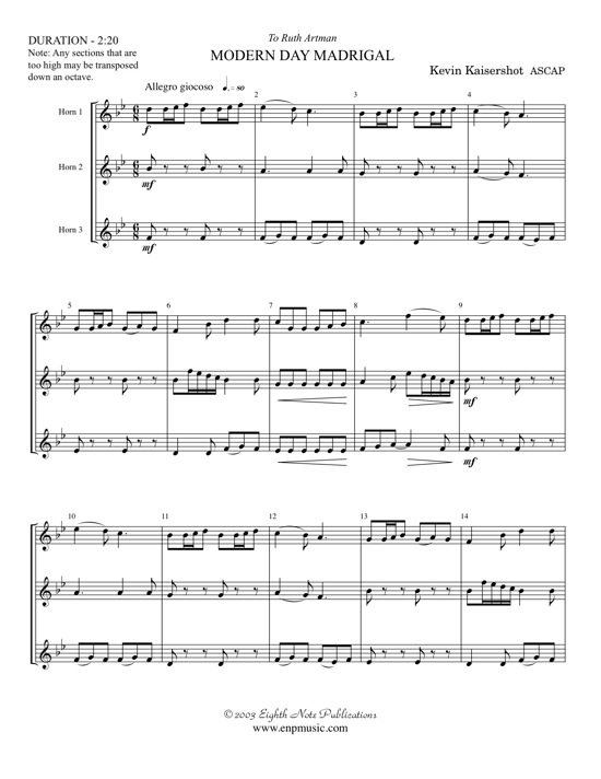 As the first movement of Suite Historique, this versatile work is adaptable to many combinations of instruments. Designed to remind the listener of the Renaissance style madrigal, in a modern setting, it is a multi-versed composition that even contains the fa-la-la section. |