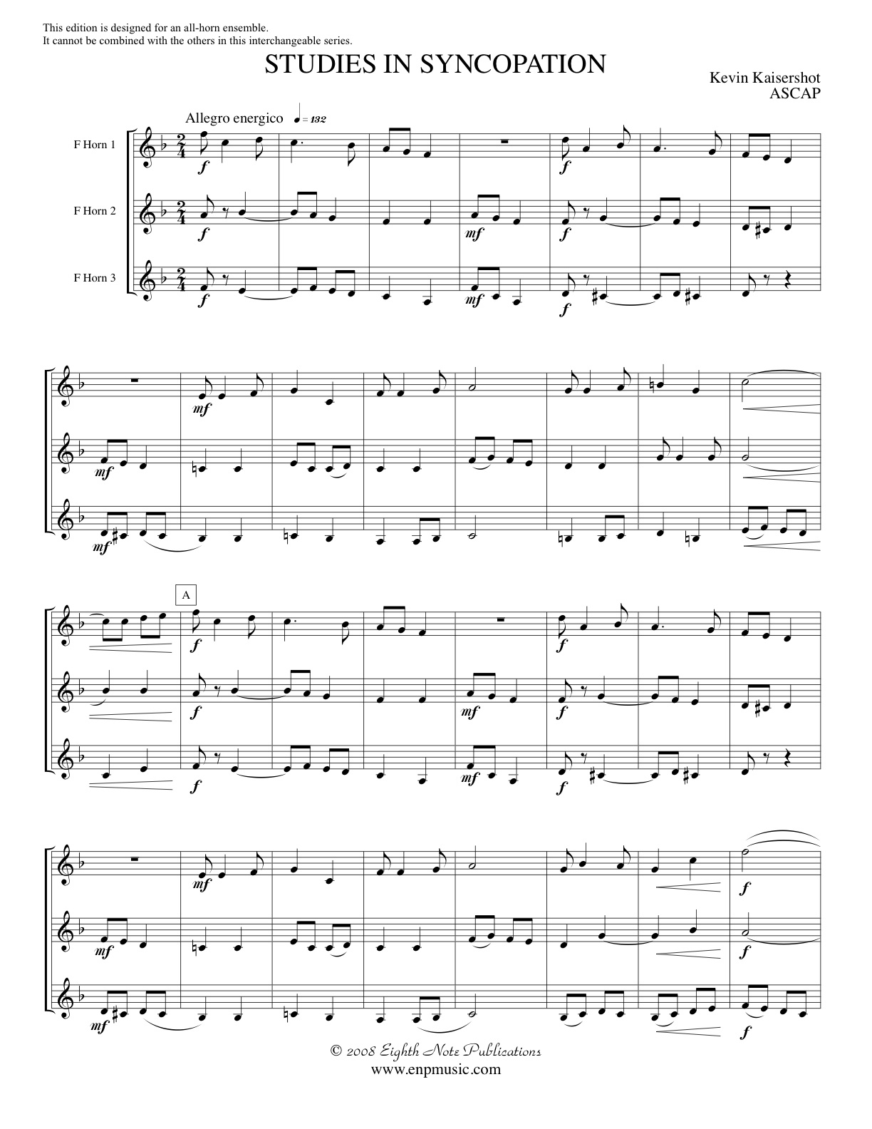 This piece was designed to teach various forms of syncopation in an ensemble setting. While much of what is presented is pretty straightforward and somewhat common in terms of syncopated figures, there is still an element of tongue-in-cheek to this work. This STAND ALONE version cannot be used in combination with the others in the series. It has been transposed to best suit the range of horn players at this level. |