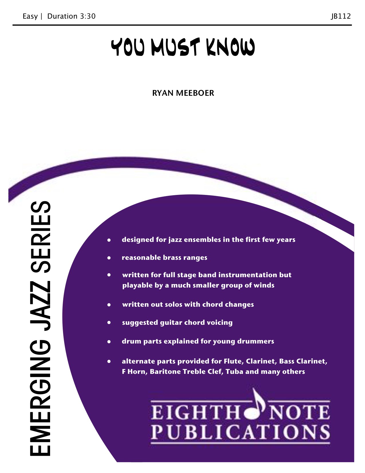 You Must Know opens with a fun mixture of syncopated rhythms and the power of a rock chart that will grab anyone s attention. This samba tune is meant to be played with lots of energy using an upbeat tempo to keep the excitement going throughout.