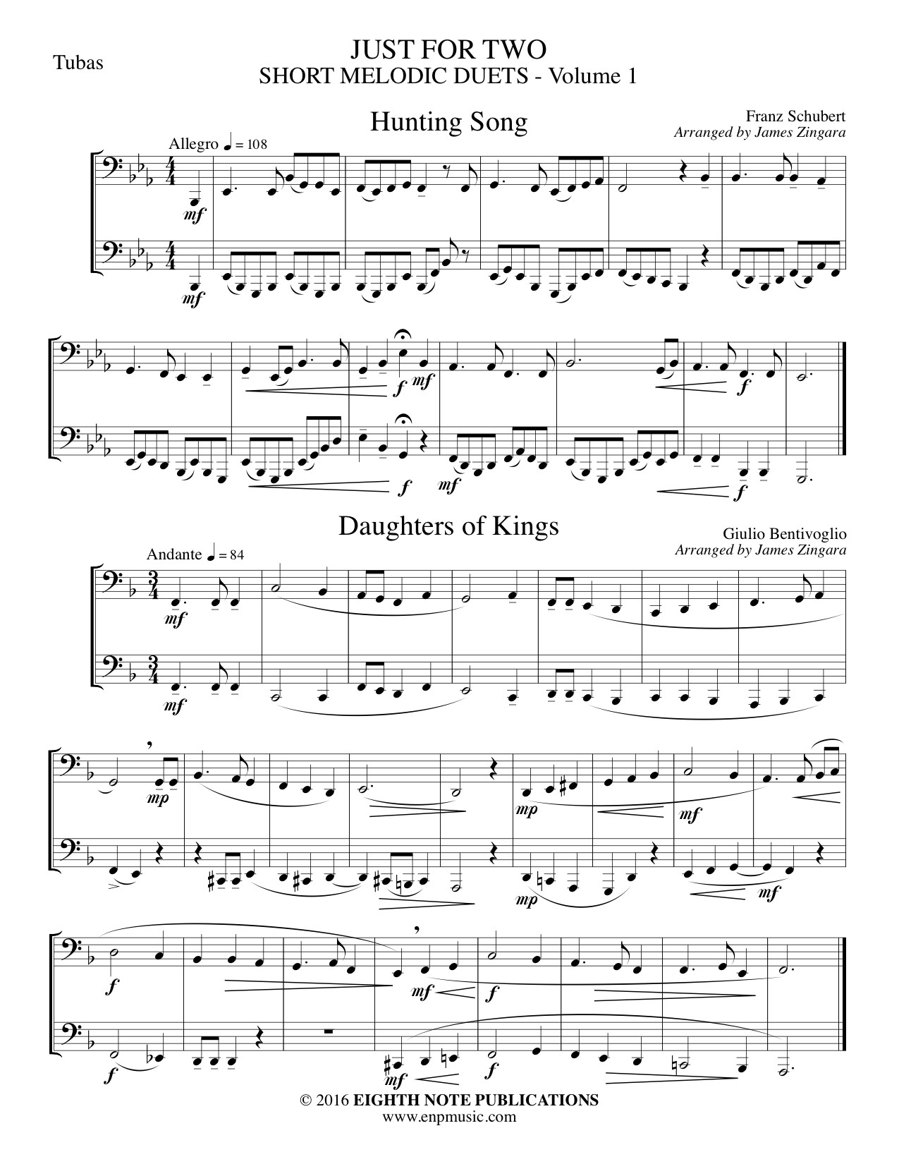 The material in these duets have been taken from a variety of public domain sources including vocal duets and instrumental works for strings, horns, flutes and even bagpipes(!); composers represent both the well-known and the quite obscure. The difficulty level of these duets ranges from quite easy to intermediate with the emphasis of relatively simple melodies in which shaping, phrasing and intonation are the primary challenges.