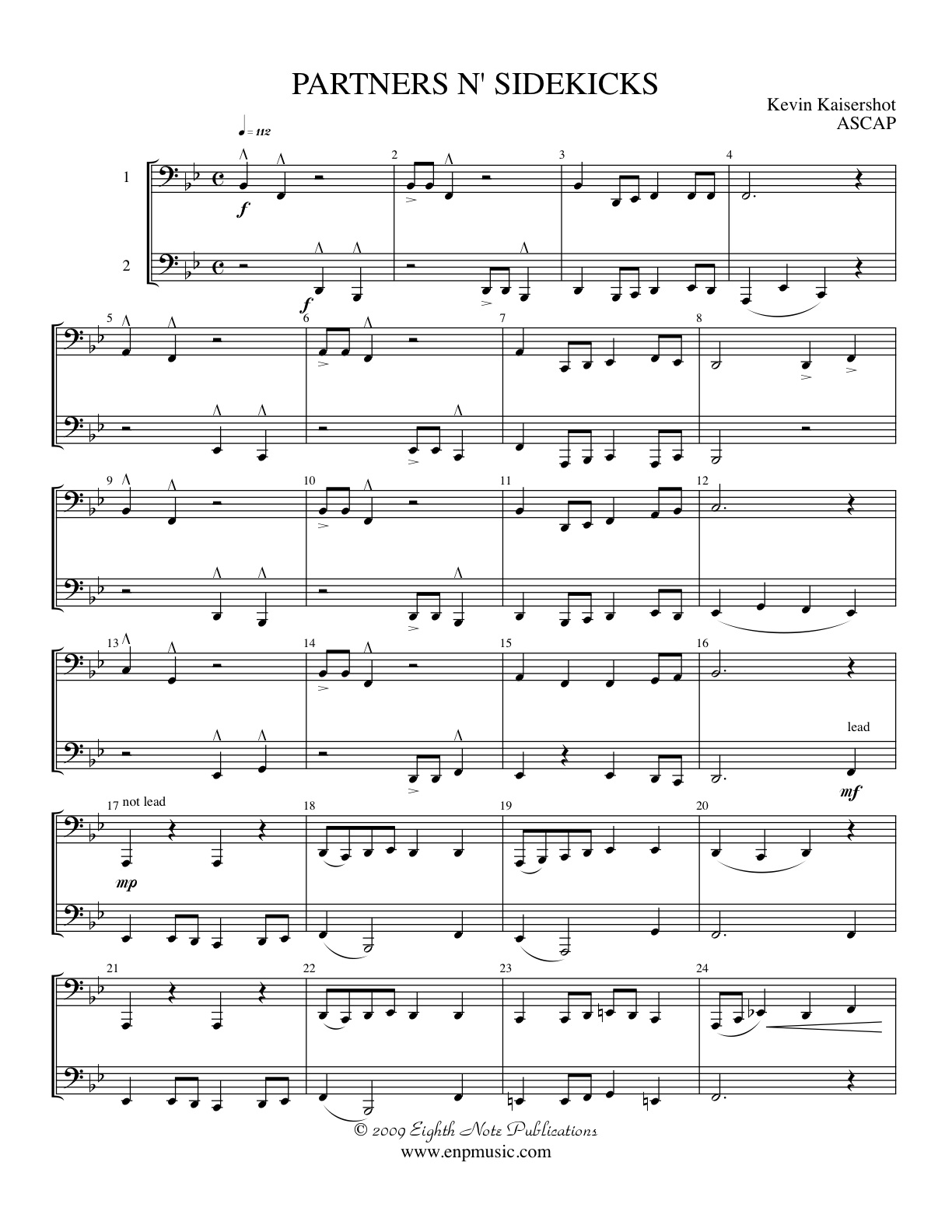 Designed for beginning level instrumentalists, Partners n Sidekicks was written for a couple of my former students whose musical energies were contagious. Though both very independent players (a skill that served them well as they progressed) they worked very well together, each challenging the other to be better. So it is with this piece that allows each performer to present the musical line as well as work together (in harmony) as the piece progresses.