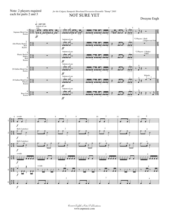The intent of this piece is every drummers dream to just groove and have fun doing it. The entire piece is played on an assortment of buckets and garbage cans (both metal and plastic). Parts can be easily doubled if desired. As well, there is the serious moment of the playful rendering of O Canada near the end on kazoos. Any song can be inserted at that point (as long as it is a piece that is normally taken seriously or is high brow). This is scored for an ensemble of at least 8 players. |