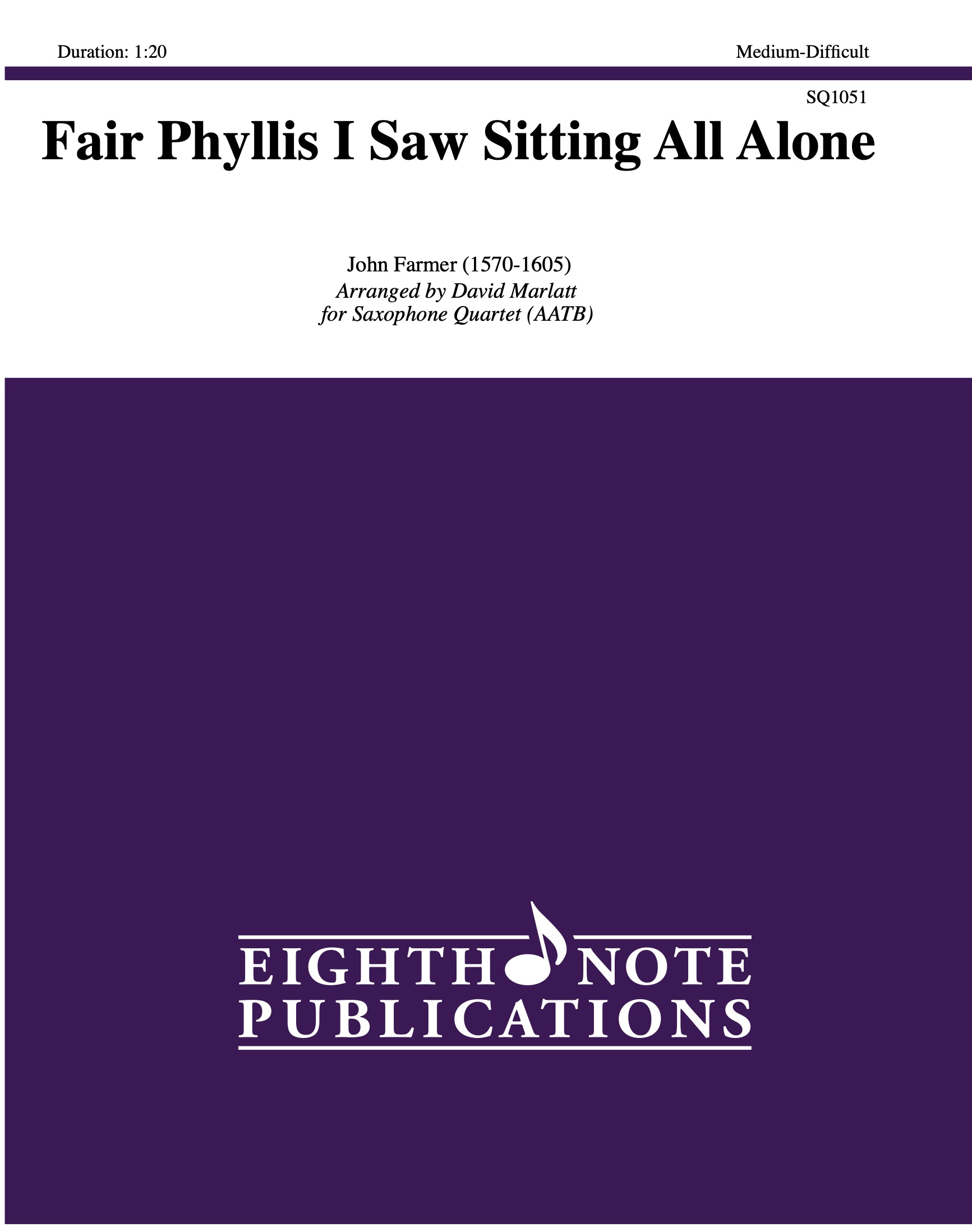 Fair Phyllis I saw sitting all alone is an English madrigal by John Farmer. The song describes a person who saw a young shepherdess sitting alone feeding her sheep near a mountain. The other shepherds did not know where she was at the time. Her lover goes looking for her and wanders through the hills playing hide and seek. Eventually he finds her, and when he does, they kiss. Great short madrigal for AATB.