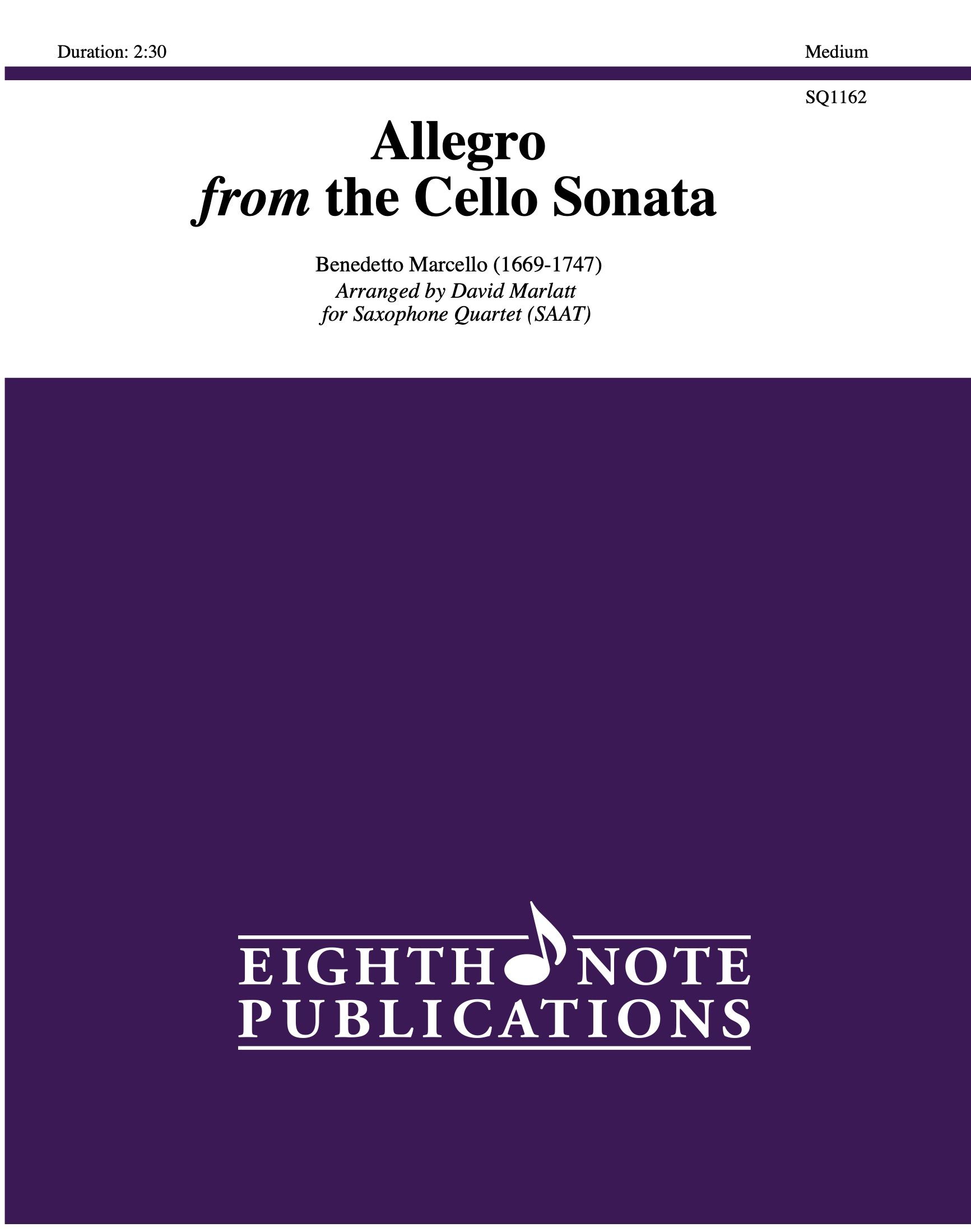 This arrangement is a movement from the Cello Sonata in G. It has been set for a soprano solo with the remainder of the quartet (AAT) in a supporting role. Flashy sounding scales (in an easy key) make this solo sound harder than it is. This is a perfect feature for the soprano in the group while essentially giving the remainder of the ensemble a break with very light playing and lots of rest. |
