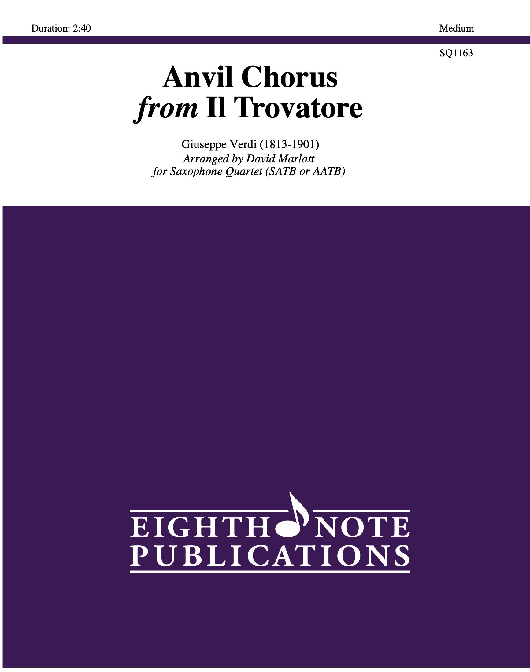 The rousing and well-known Anvil Chorus or Gypsy Chorus from Verdi's Il Trovatore (The Troubadour) depicts Spanish gypsies striking their anvils at dawn and singing the praises of hard work, good wine, and their gypsy women. This is a flashy piece and everyone gets a good part.