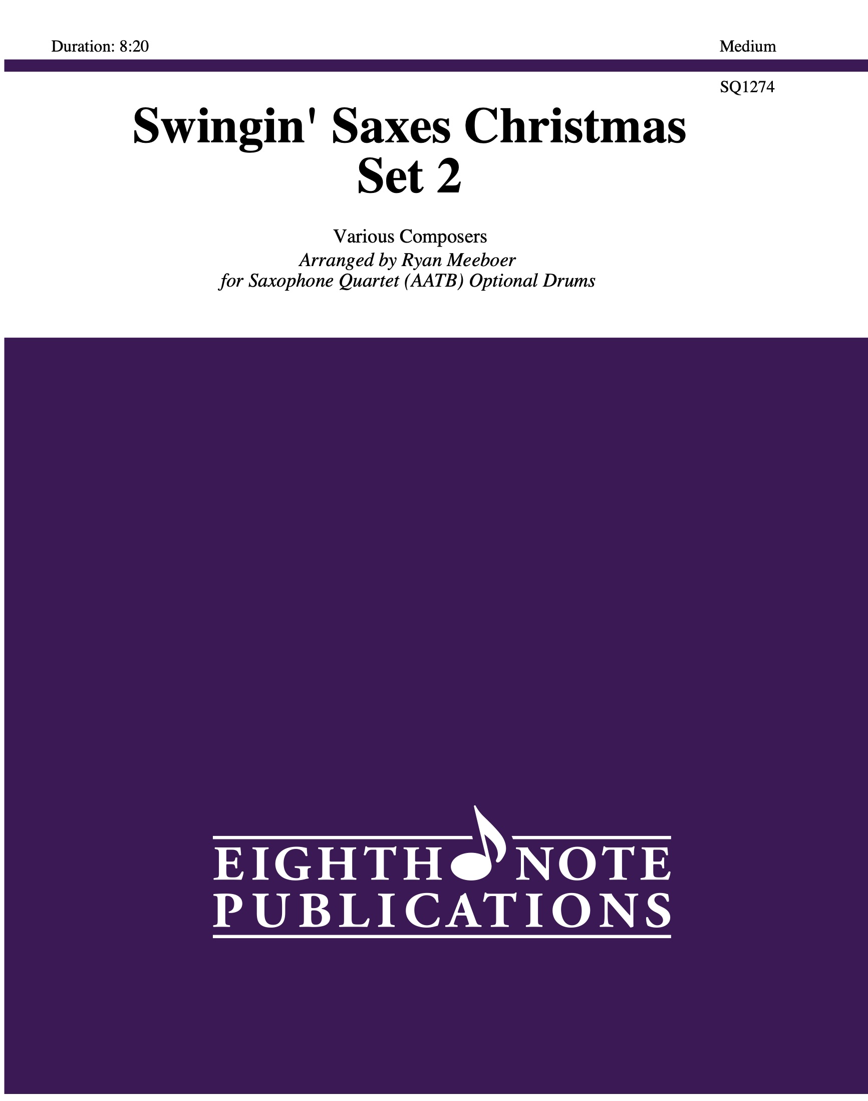 Set for medium level sax quartet and optional drum set, this is a fun collection of four traditional carols done up in non traditional ways! Up on the Housetop kicks into a catchy, latin flavoured version of this childrens favourite Christmas carol. Hark the Herald Angels is set as a jump swing chart in the style of Gene Krupa. Silent Night is arranged in 4/4 (as opposed to the original triple metre), to create the feel of a rock ballad. We Three Kings is an upbeat, jazz waltz. Also check out Swingin Saxes Christmas - Set 1 - catalog number SQ1273.