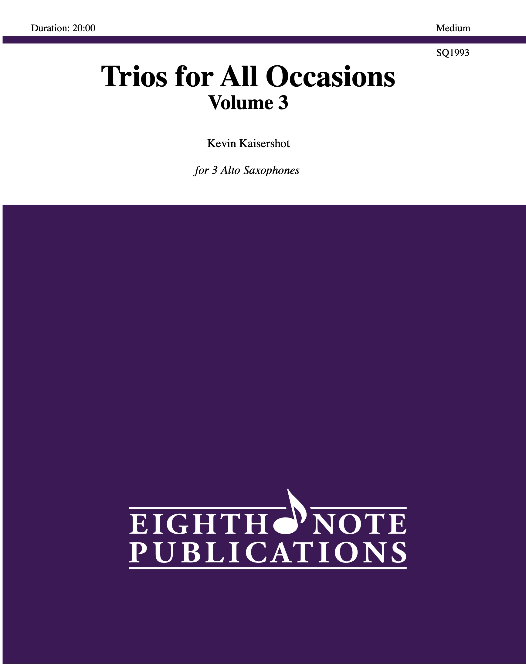 This is a collection of original compositions by award winner educator and composer Kevin Kaisershot set for 3 like-instruments. The arrangements are suitable for a variety of performance situations such as school concerts, at church or on community gigs. Pieces included are: Bagatelle, Honor and Tribute, Galop, Siesta, Eighth Notes, Minor Burns, Ode Melancholique, Plie, Regimental, Serpent Dance, Tattered Rag and Peckle Polka.