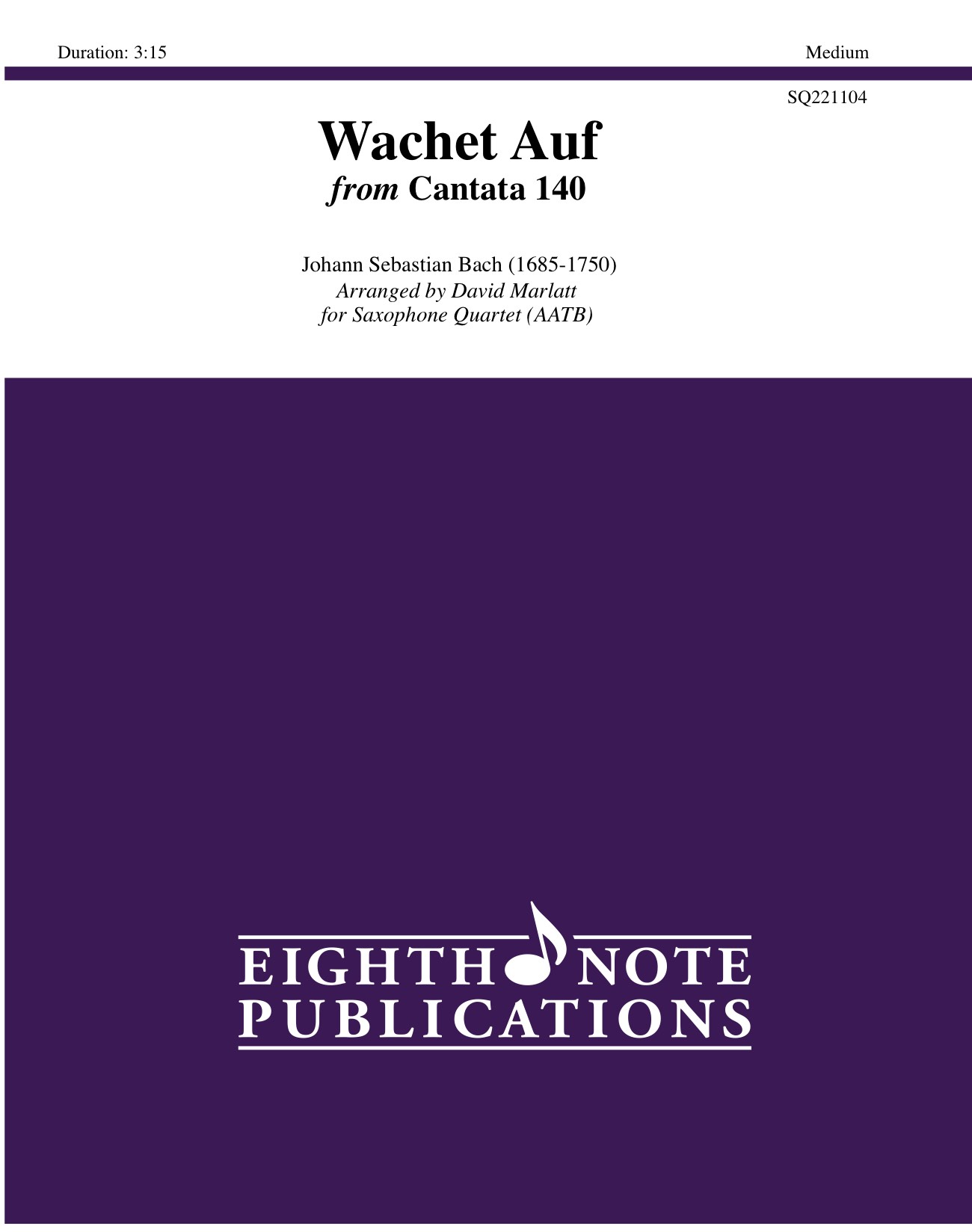 Bach wrote many cantatas but none have maintained the popularity as this excerpt from No. 140 often called Sleepers Awake. This is most likely due to the elegant, flowing nature of the writing that is so distinctly Bach. The solo part alternates the sustained line with the more technical line which provides interest in sound and interest in playing. |