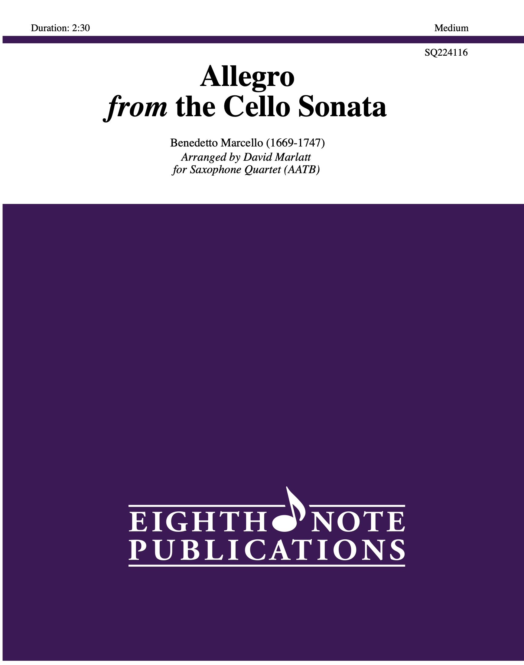 This arrangement is a movement from the Cello Sonata in G. It has been set for an alto solo with the remainder of the quartet in a supporting role. Flashy sounding scales (in an easy key) make this solo sound harder than it is. This is a perfect feature for the soprano in the group while essentially giving the remainder of the ensemble a break with very light playing and lots of rest. |