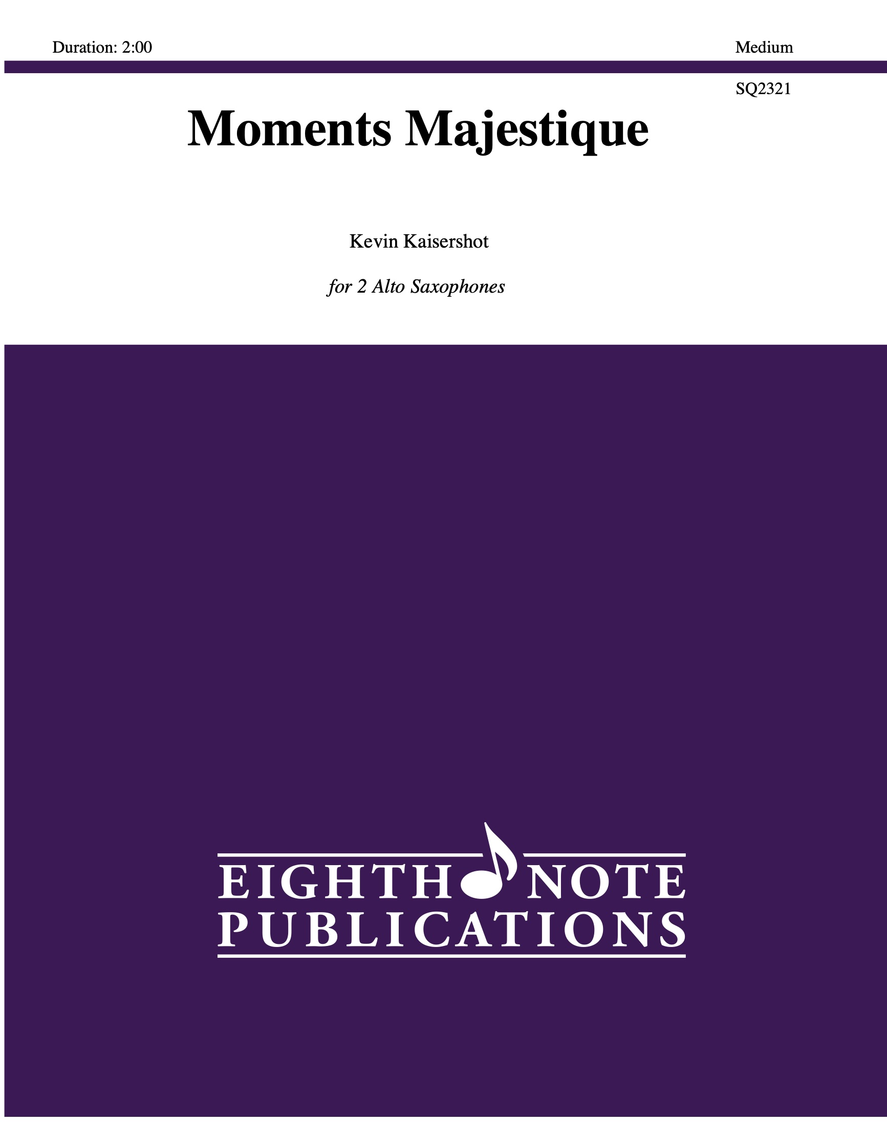 Moments Majestique is a versatile duet that works well for any occasion. It has a royal or regal air about it, and is adaptable to almost any instrumental combination or cross-over. It is designed for the intermediate level performer, but can be played by almost any level performer as ranges are small and rhythms reasonably simple.