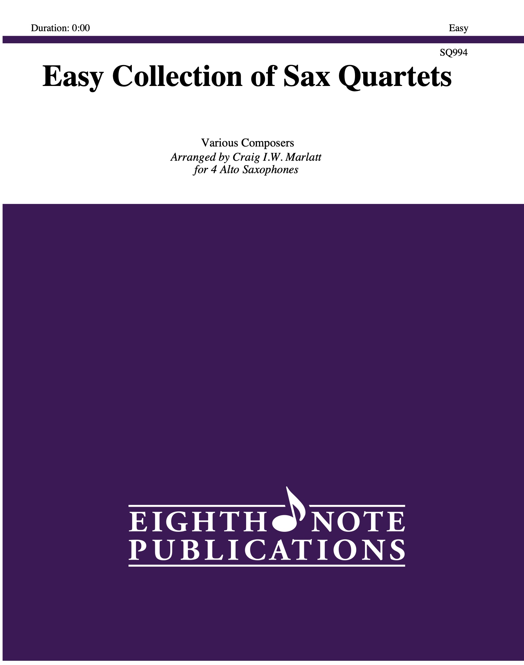 This collection is directed at the developing player and a wide variety of pieces has been arranged with this in mind. Pieces include the main themes from: Aura Lee, Surprise Symphony, 1812 Overture, Battle Hymn of the Republic, O God Our Help in Ages Past, Canon (Mozart), and several others. The concept of these collections is to bridge the gap between the younger players and professionals by providing "stepping stones" in difficulty while introducing players to an enormous cross-section of music. This is scored for 4 E-flat saxophones.