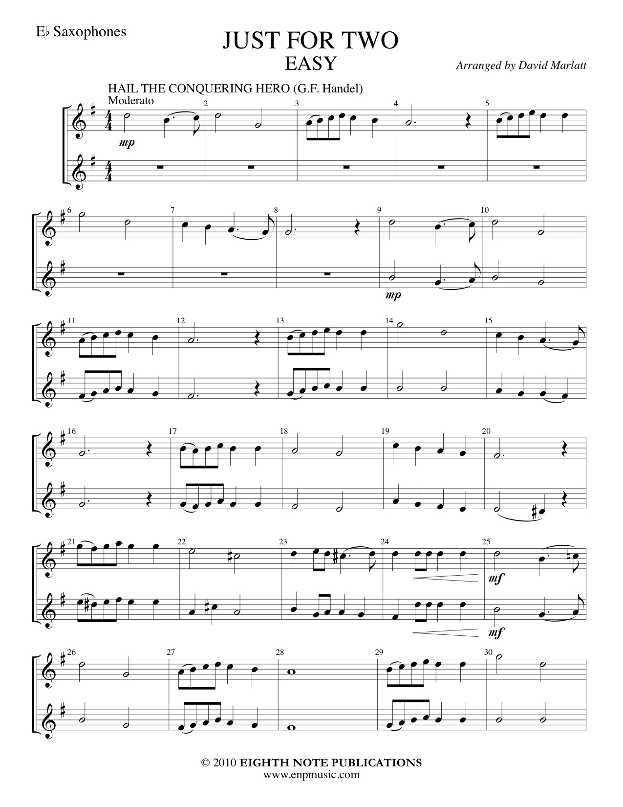 This is a collection of arrangements of well-known music set for 2 like-instruments (or may be combined with other transposing instruments). These serve as a great introduction to chamber playing and working together without a conductor. Pieces included are Hail the Conquering Hero, March Militaire, This Old Man Variations, Steal Away, Old MacDonald s Farm, De Colores, Men of Harlech, Abide With Me and William Tell Overture.
