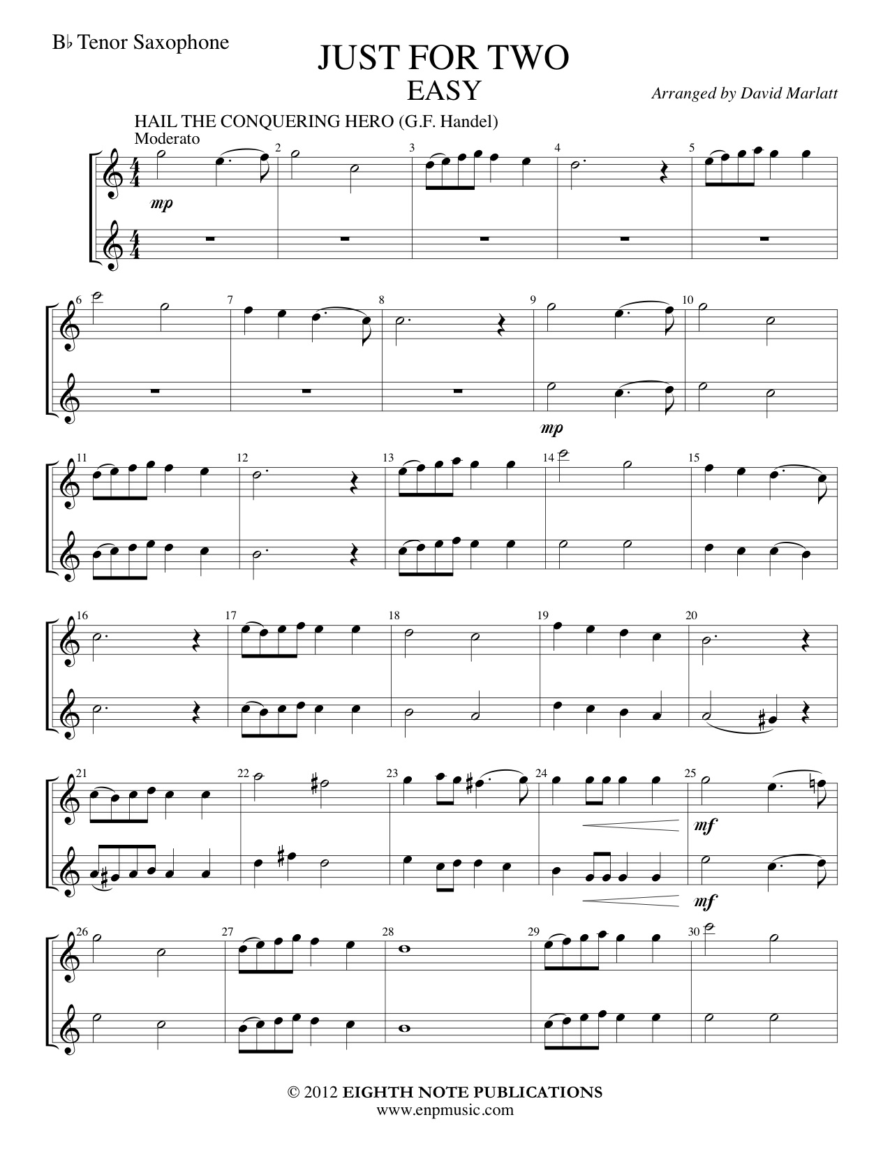This is a collection of arrangements of well-known music set for 2 like-instruments (or may be combined with other transposing instruments). These serve as a great introduction to chamber playing and working together without a conductor. Pieces included are Hail the Conquering Hero, March Militaire, This Old Man Variations, Steal Away, Old MacDonald s Farm, De Colores, Men of Harlech, Abide With Me and William Tell Overture.