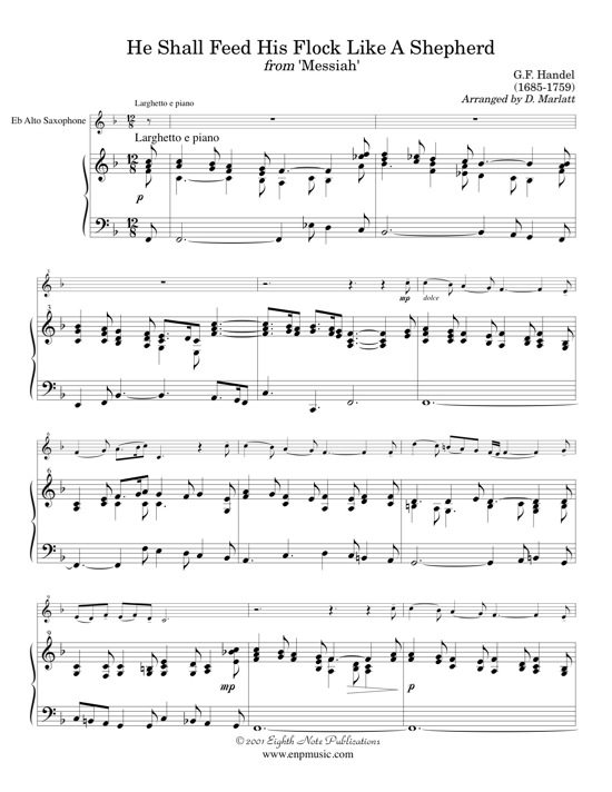 This famous aria from one of the best known Christmas pieces has been elegantly transcribed for alto saxophone and keyboard (piano or organ). This is a beautiful work with simple long phrases and clear harmonies. This arrangement is ideal for playing at Christmas church services or at weddings. |
