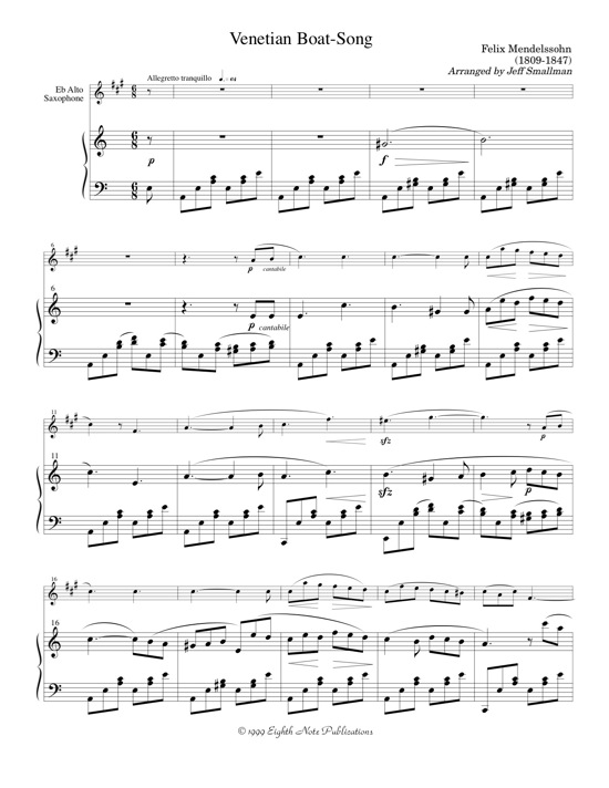 Arranger Jeff Smallman has taken this piano piece and arranged it for solo alto saxophone. The haunting, melancholy solo line is complimented by a newly composed countermelody found in the pianist's right hand. This piece is not too challenging and will prove very accessible to the developing and seasoned instrumentalist alike. |