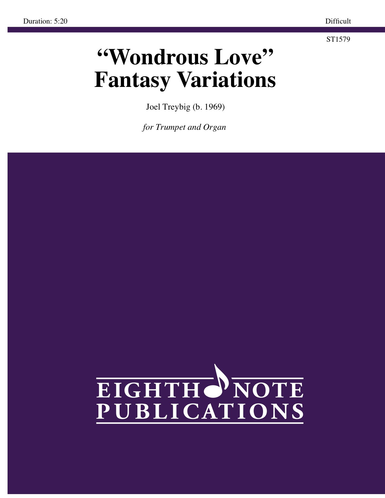 Written for flugelhorn/piccolo trumpet and organ, Wondrous Love Fantasy Variations goes through seven contrasting sections based on the tune, including several cadenzas for the flugelhorn/piccolo trumpet player and an interlude for the organist.