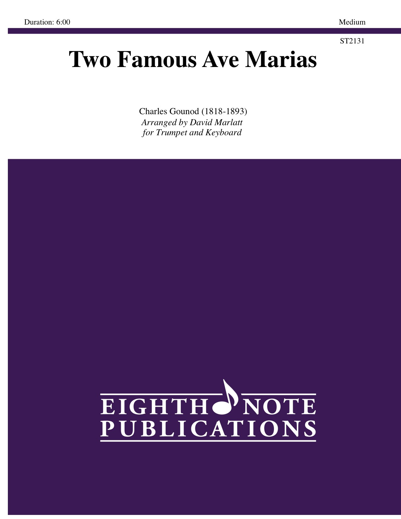 These two works (one by Gounod and the other by Schubert) are among the most popular and often used pieces at weddings and recitals. The simple accompaniment combined with the famous flowing melody makes either Ave Maria a great choice for soloist and keyboard (piano or organ) at various occasions. Durations: 2:25 / 3:35