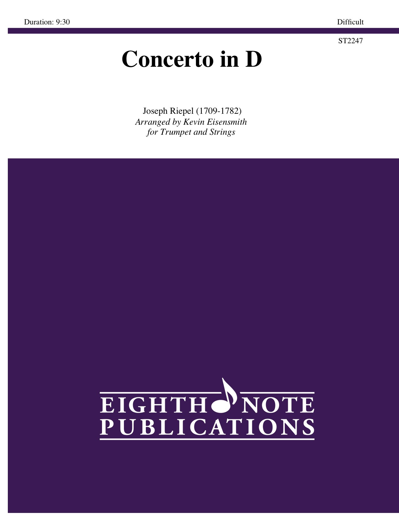 This is a first ever edition of a little known work by Joseph Riepel. It is scored for trumpet, 2 flutes, 2 horns, strings and continuo. The solo part has elegant flowing lines that intermix with the flutes and horns. The addition of these wind parts makes this work stand out from some other famous trumpet solos. The range in the solo part is quite extended with G concerts being the highest pitch required. This is a major new work for piccolo trumpet and chamber orchestra. |
